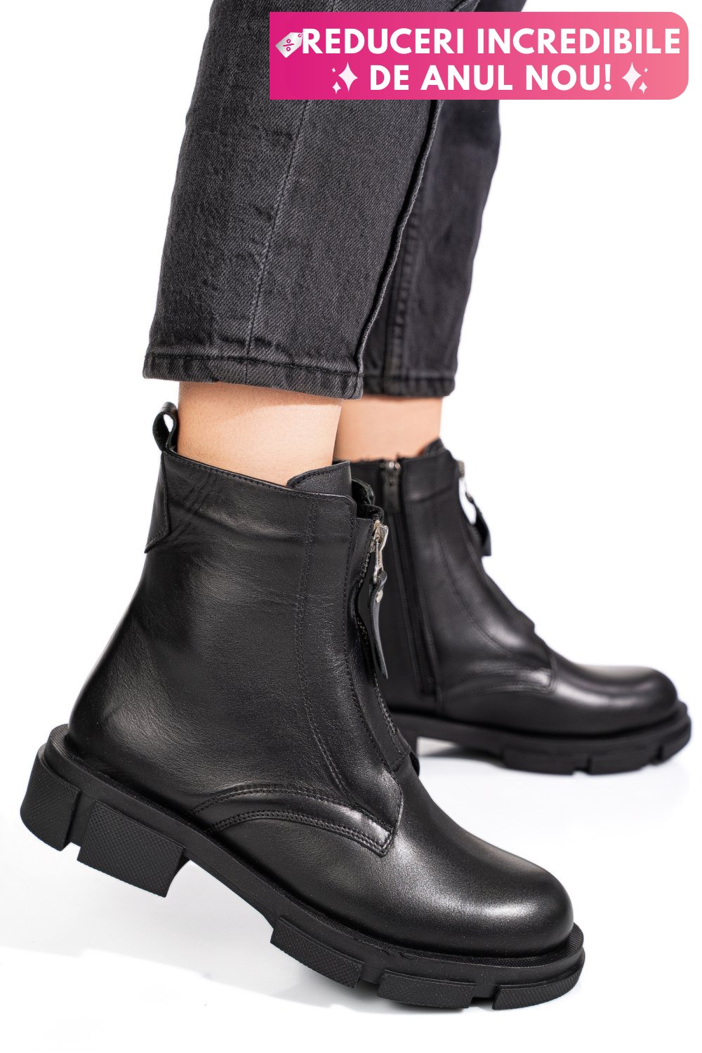 Descoperă ghetele dama din piele naturală, perfect pentru sezonul de toamnă! Culoarea neagră elegantă adaugă un strop de sofisticare oricărei ținute. Cu un fermoar practic, aceste ghete sunt nu doar stilate, ci și ușor de îmbrăcat. Îmbină confortul cu un design modern, perfect pentru orice ocazie. Alege confortul și stilul în fiecare pas!