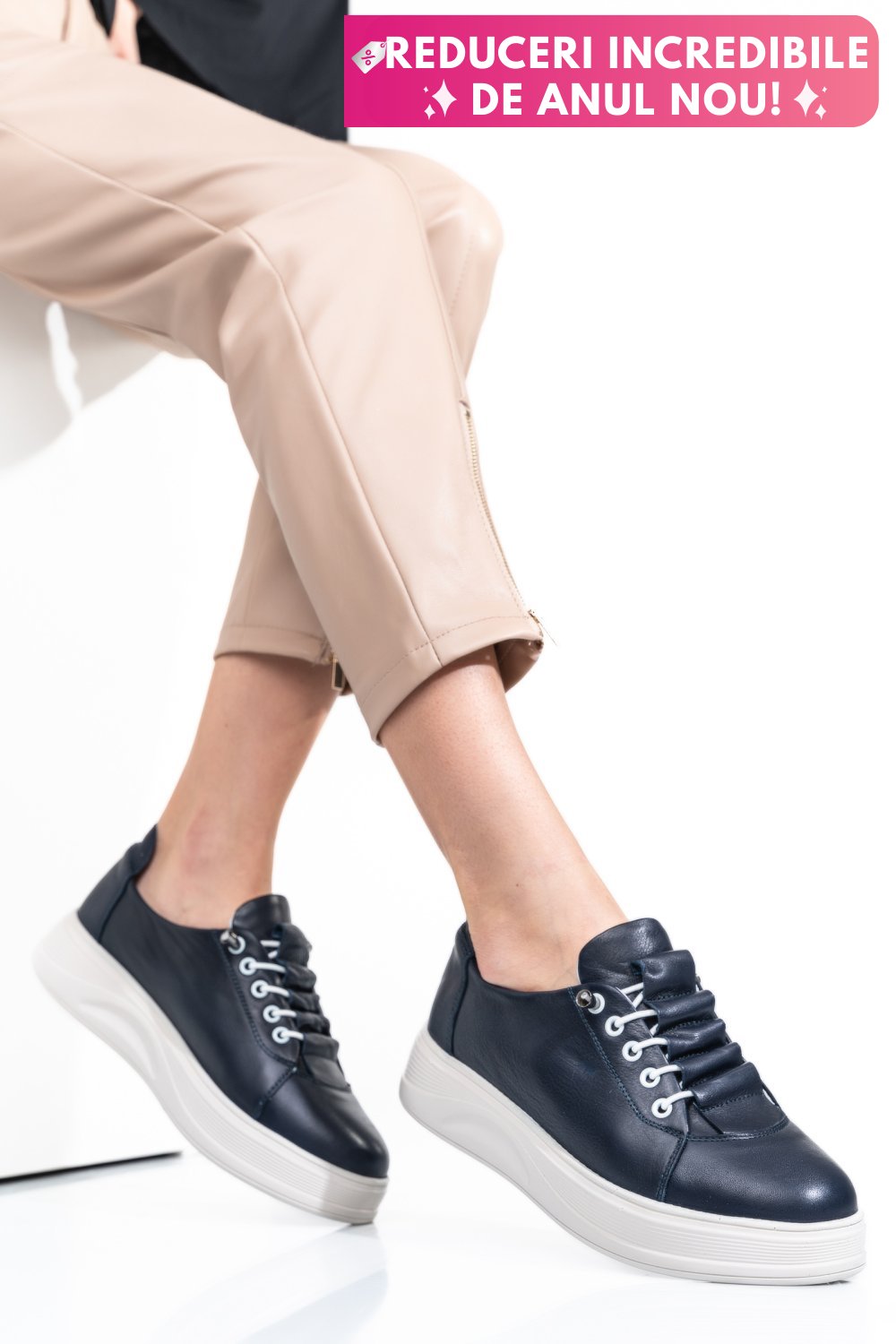 Descoperă confortul și stilul cu acești pantofi sport dama, disponibili într-o nuanță elegantă de albastru. Confecționați din piele naturală de înaltă calitate, acești pantofi oferă atât durabilitate, cât și un aspect chic. Talpa ușoară asigură un mers plăcut pe parcursul întregii zile. Fie că îi porți la o plimbare sau la întâlniri casuale, sunt alegerea perfectă pentru orice ocazie. Profită acum de prețul incredibil și adaugă această pereche esențială garderobei tale!